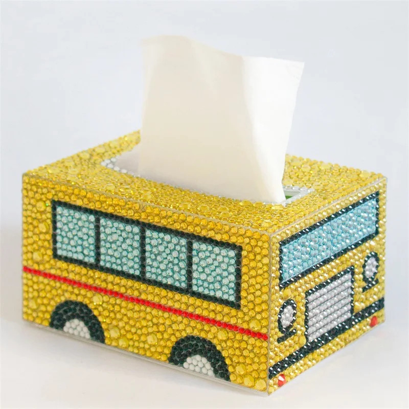 Busz mintás zsebkendőtartó doboz gyémántszemes kirakó