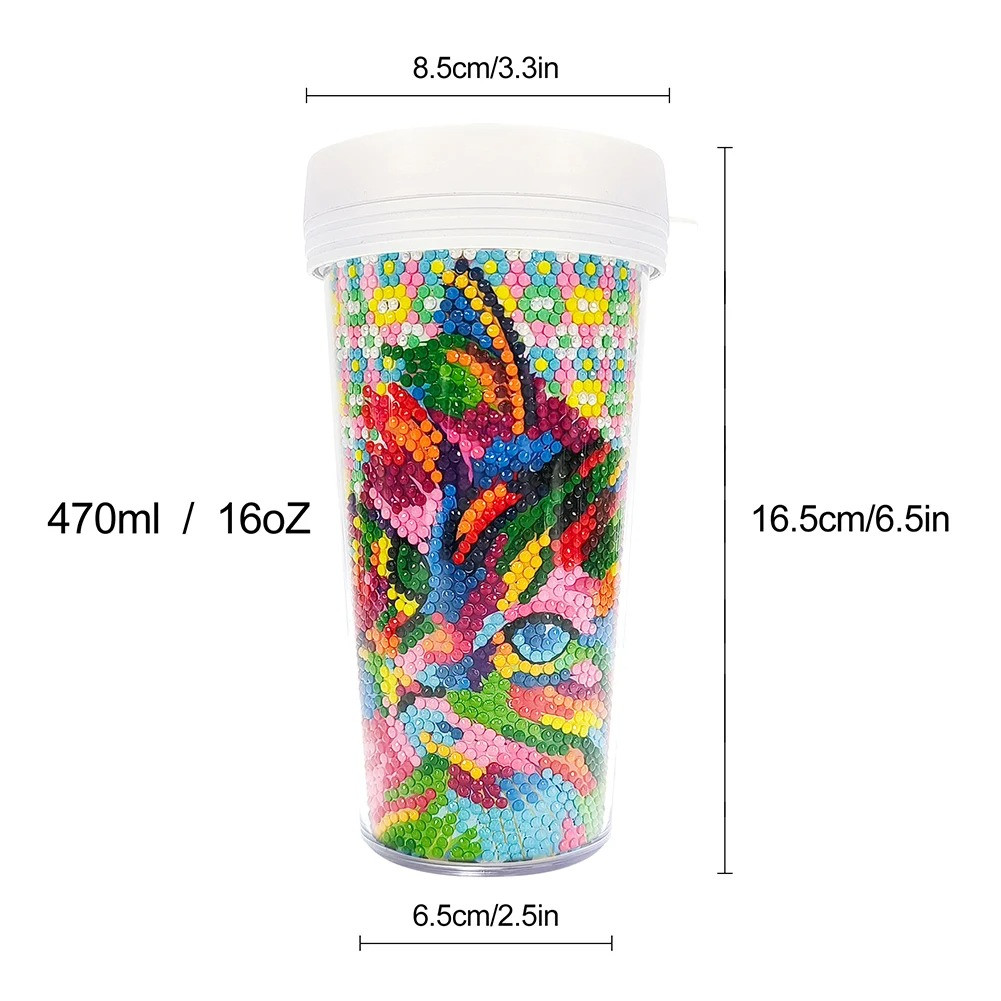 A pohár űrtartalma 470 ml, így elegendő helyet biztosít a kedvenc italodnak, legyen az forró vagy hideg. Az anyaga minőségi műanyag, amely biztosítja a tartósságot és a könnyű tisztíthatóságot. Emellett a pohár rendelkezik egy műanyag nyílással, amely tökéletesen illeszkedik a gyémántszemekkel kirakott papírhoz. Így a kész műalkotásodat biztonságban tarthatod a pohárban, amely nem teszi ki azokat közvetlenül a sérülésnek.