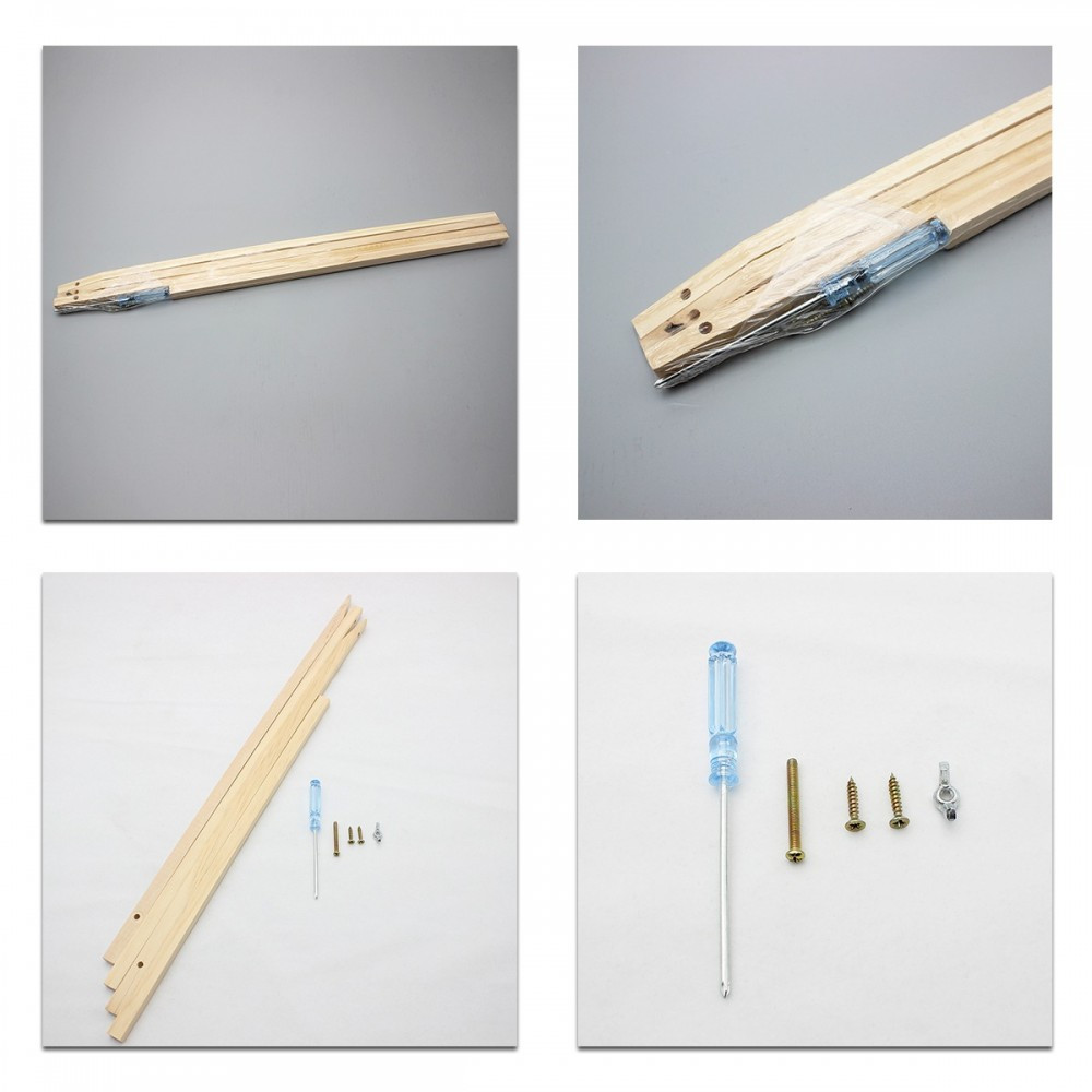 A keretet össze kell szerelni, melyhez biztosítjuk a csavarokat.
