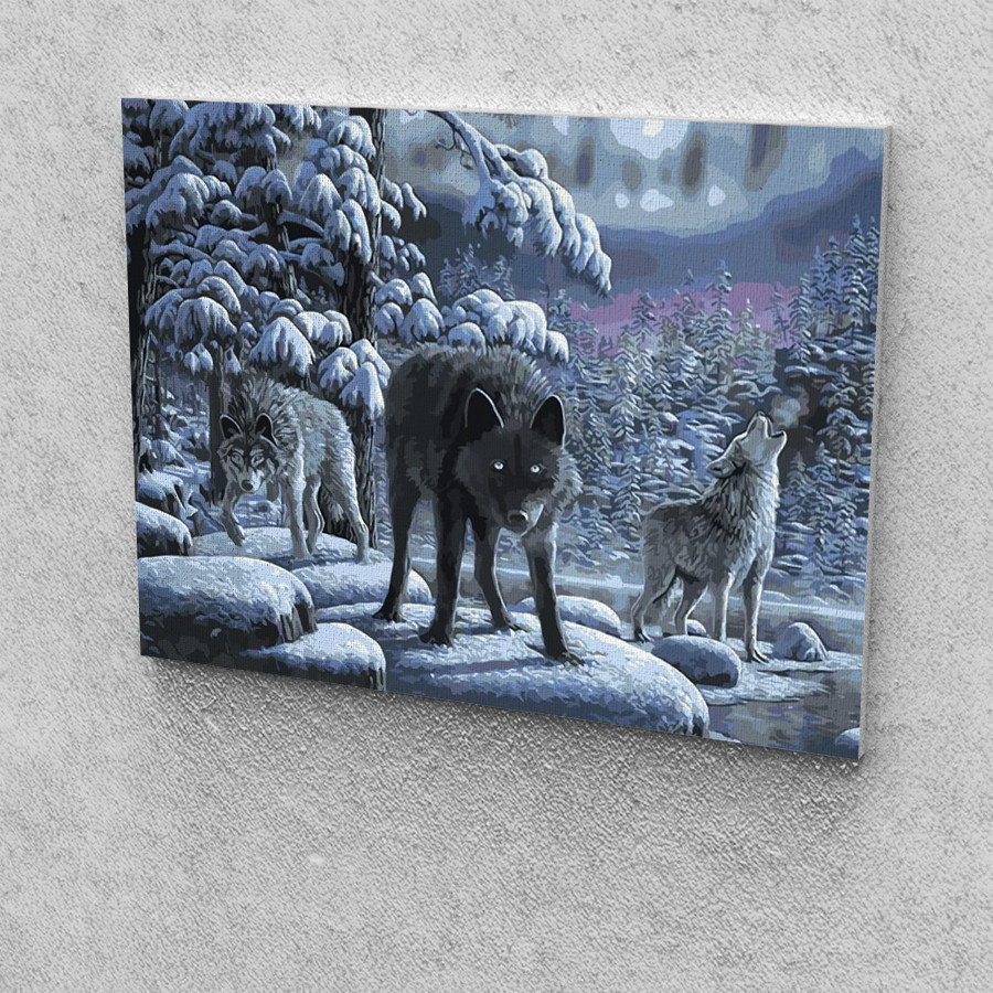 Farkasok a havas tájon festés számok alapján kreatív készlet kerettel 50x60