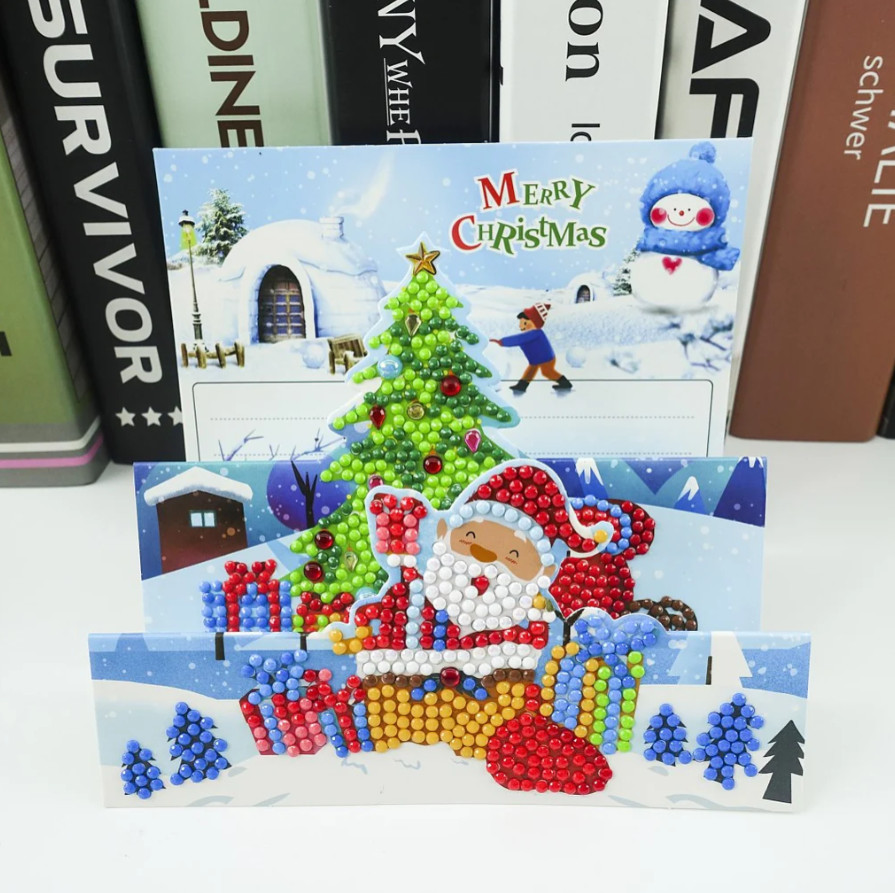 Karácsonyi 3D képeslap gyémántszemes kirakó mikulással és karácsonyfával