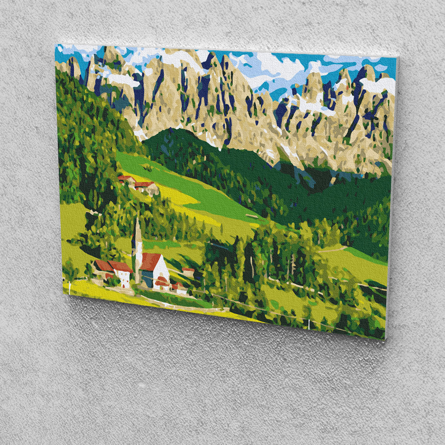 Kicsi Alpesi Falu festés számok alapján kreatív készlet kerettel