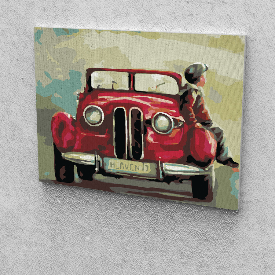 Kisfiú a piros autón festés számok alapján kreatív készlet keret nélkül