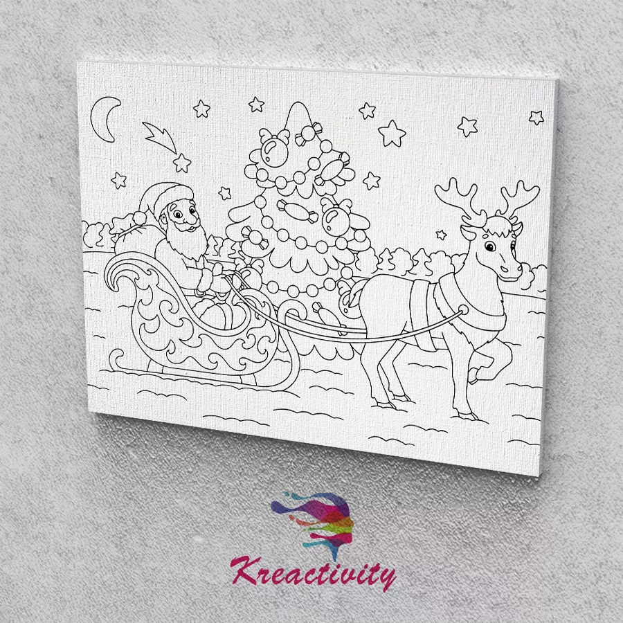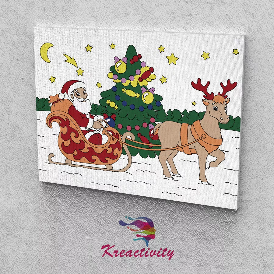 Kreatív festőszett gyermekeknek 30x40-es vászonra nyomtatva Mikulás rénszarvassal