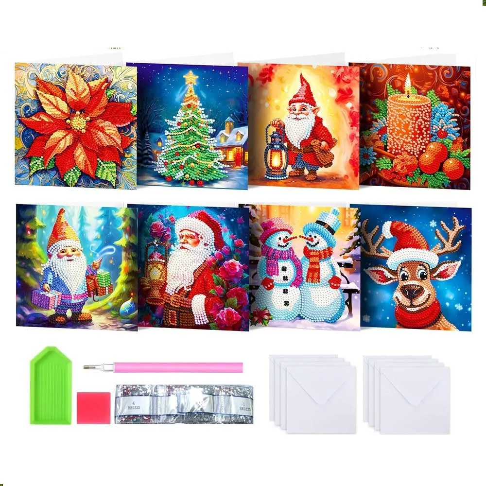 Mikulás virágos karácsonyi képeslapok gyémántszemes kirakó csomag 8 db képeslappal