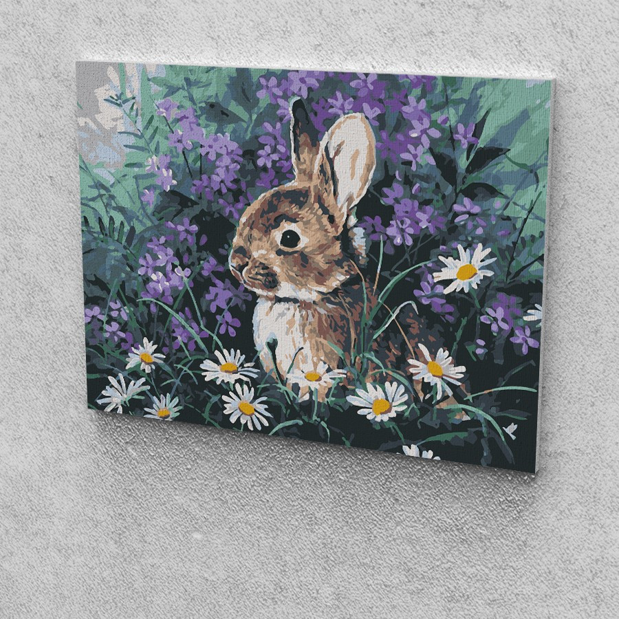 Nyúl virágokkal festés számok alapján kreatív készlet kerettel 40x50