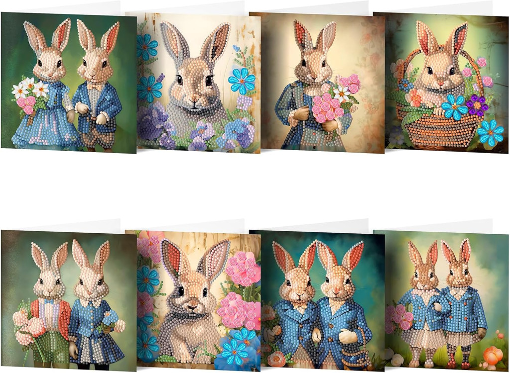 Nyulas képeslapok gyémántszemes kirakó csomag 8 db képeslappal