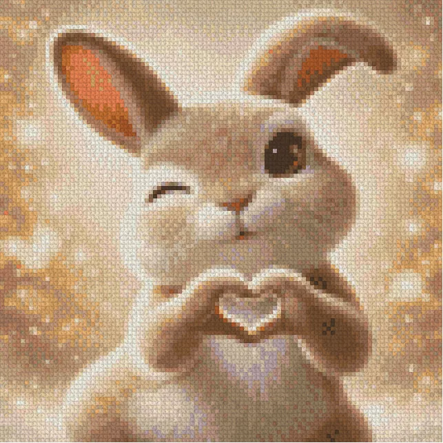 Nyuszi szeretet Kör alakú Gyémántszemes kirakó 30x30