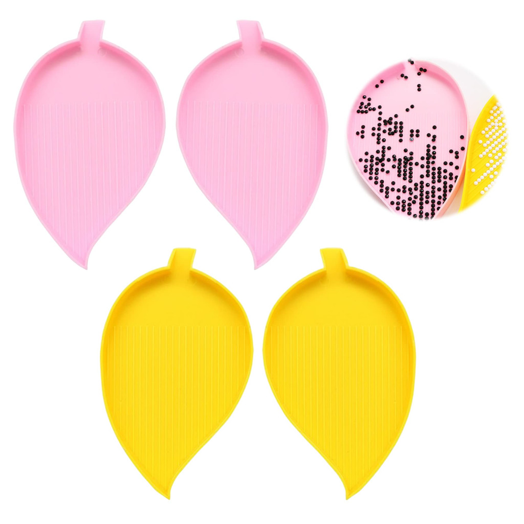 Rózsaszín színű levél alakú tálca gyémántszemes kirakóhoz