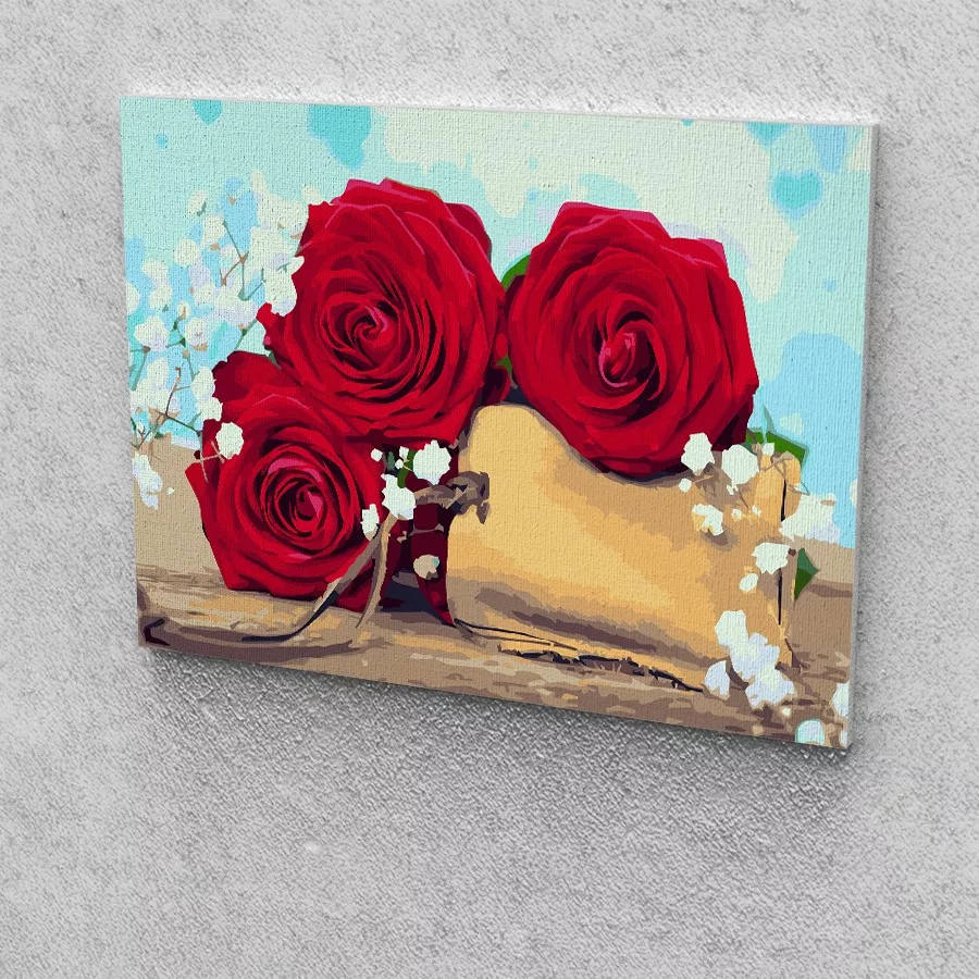 Vörösrózsák festés számok alapján kreatív készlet kerettel