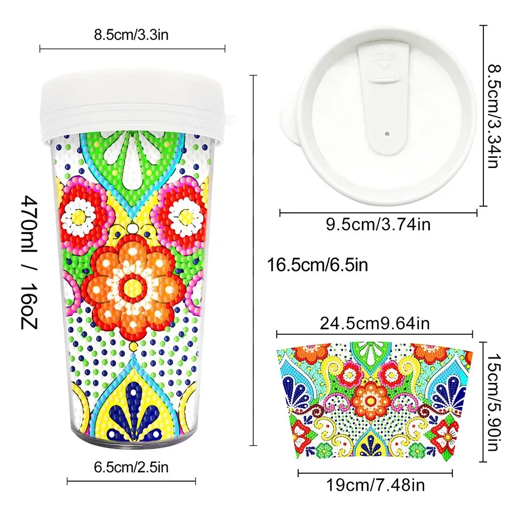 A pohár űrtartalma 470 ml, így elegendő helyet biztosít a kedvenc italodnak, legyen az forró vagy hideg. Az anyaga minőségi műanyag, amely biztosítja a tartósságot és a könnyű tisztíthatóságot. Emellett a pohár rendelkezik egy műanyag nyílással, amely tökéletesen illeszkedik a gyémántszemekkel kirakott papírhoz. Így a kész műalkotásodat biztonságban tarthatod a pohárban, amely nem teszi ki azokat közvetlenül a sérülésnek.