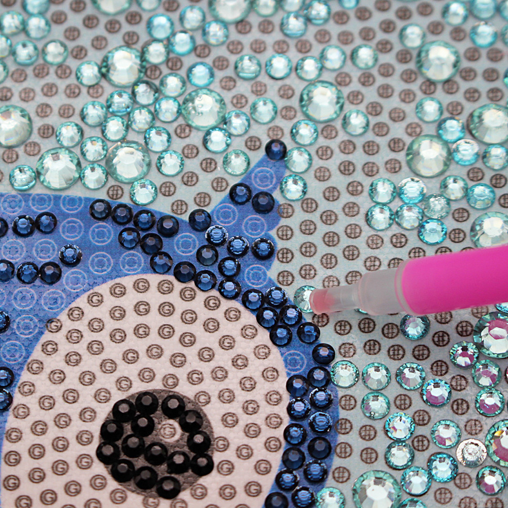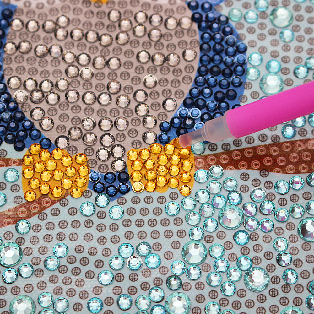3. A kis ceruza segítségével vegyük fel a kívánt színű kreatív gyémántot, és helyezzük a megfelelő helyre. A kis gyémántszemek színenként külön vannak csomagolva.