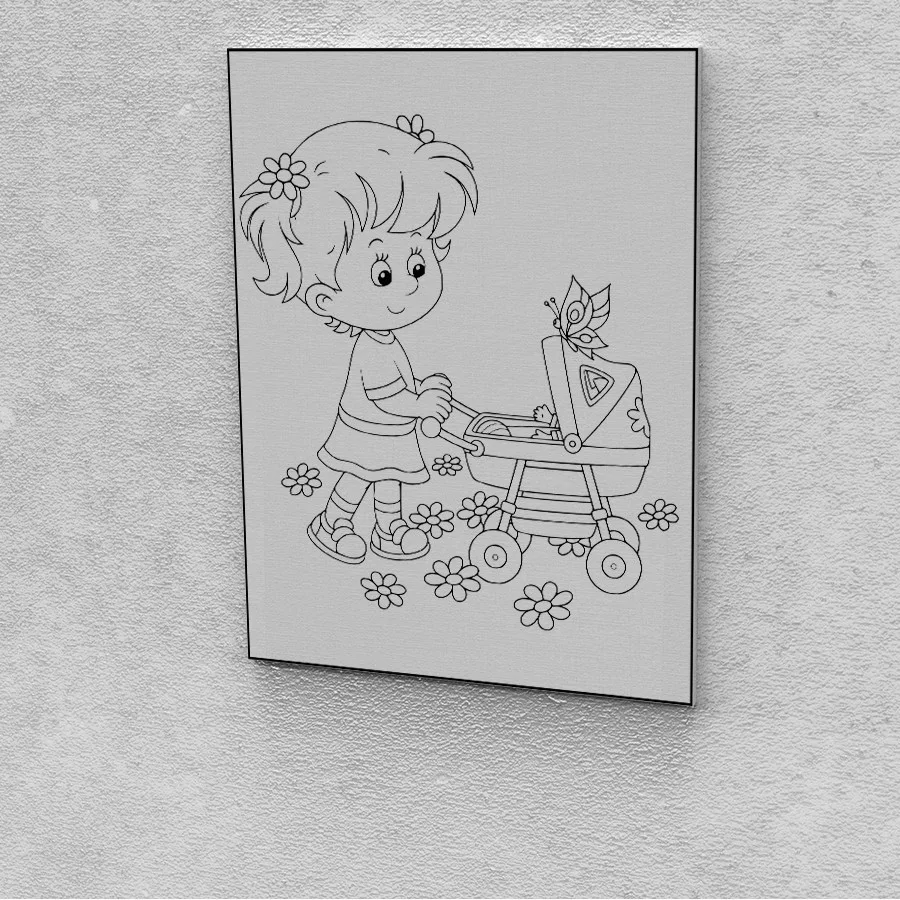 Kreatív festés maradék festékek felhasználásához kislány babakocsival