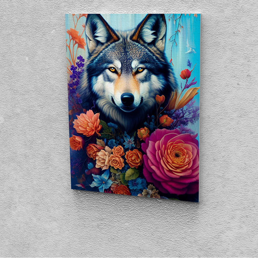 Farkas virágok között festés számok alapján kreatív készlet keret nélkül 60x70