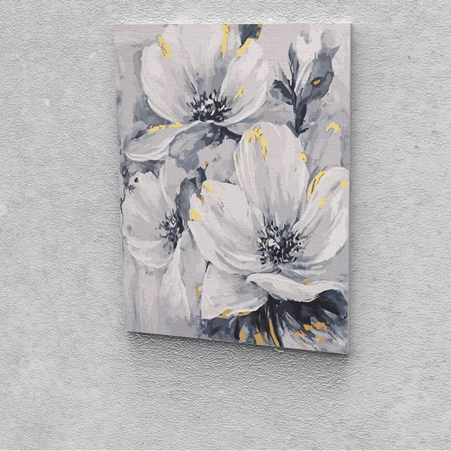 Fehér virágok festés számok alapján kreatív készlet kerettel 50x60