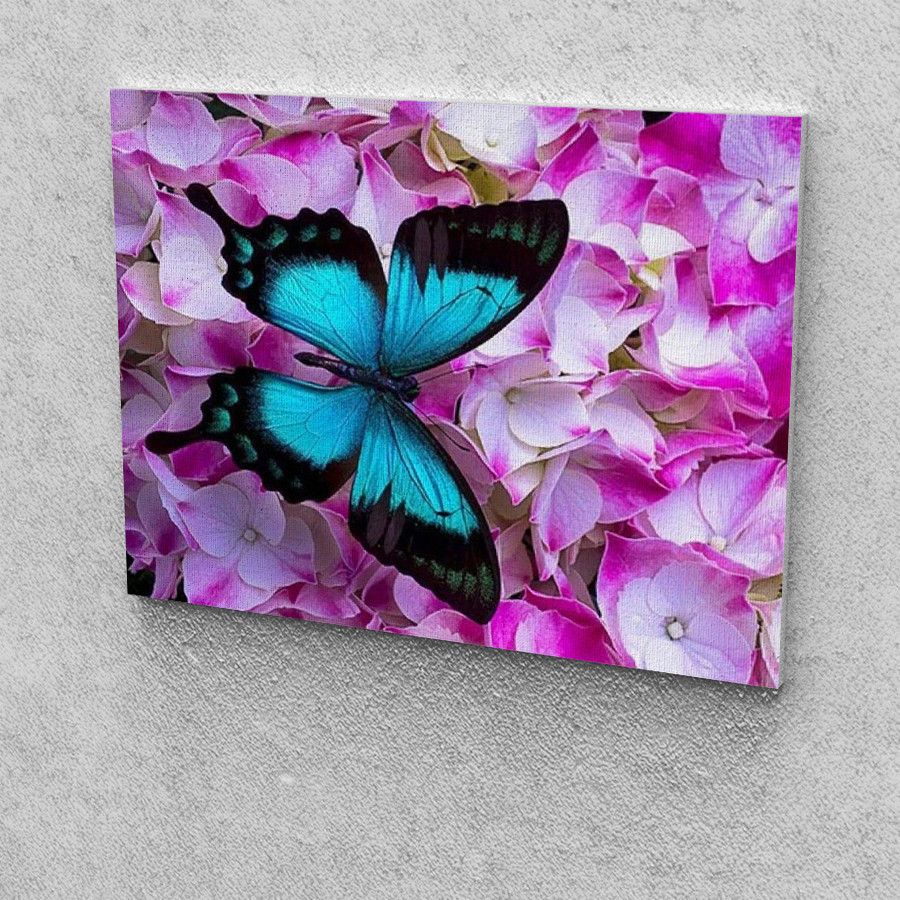 Pillangó a virágokon festés számok alapján kreatív készlet kerettel 40x50