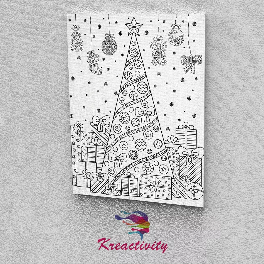 Kreatív festőszett gyermekeknek 30x40-es vászonra nyomtatva Karácsonyfa csomagokkal