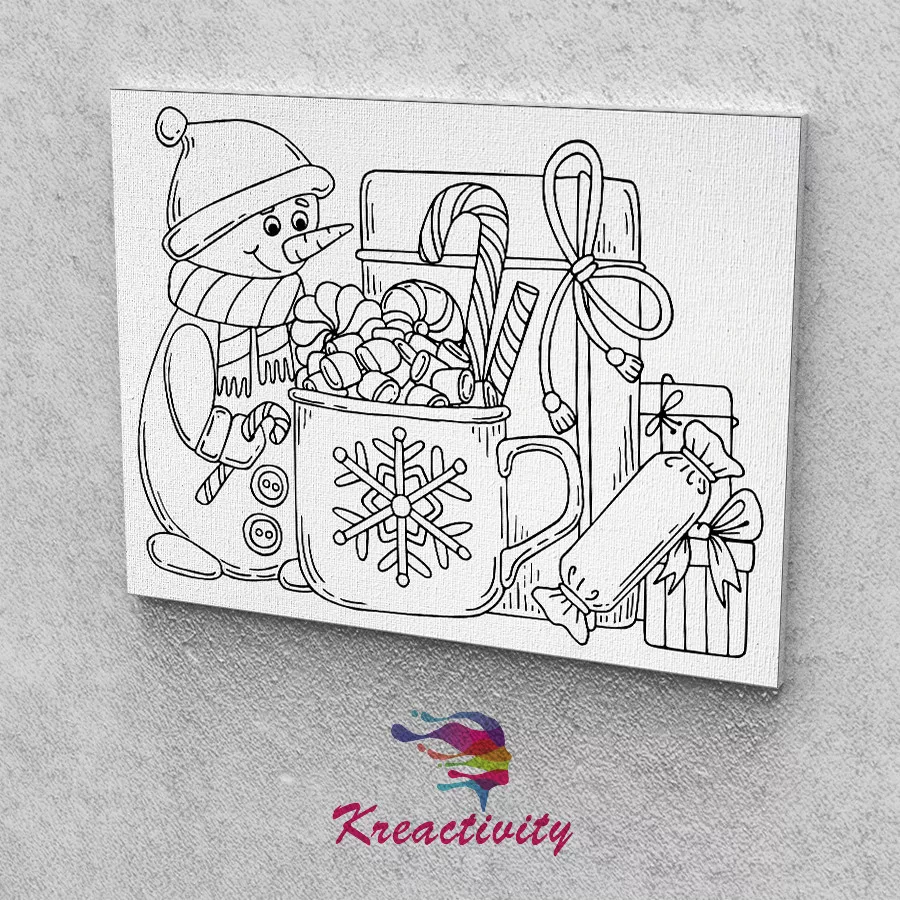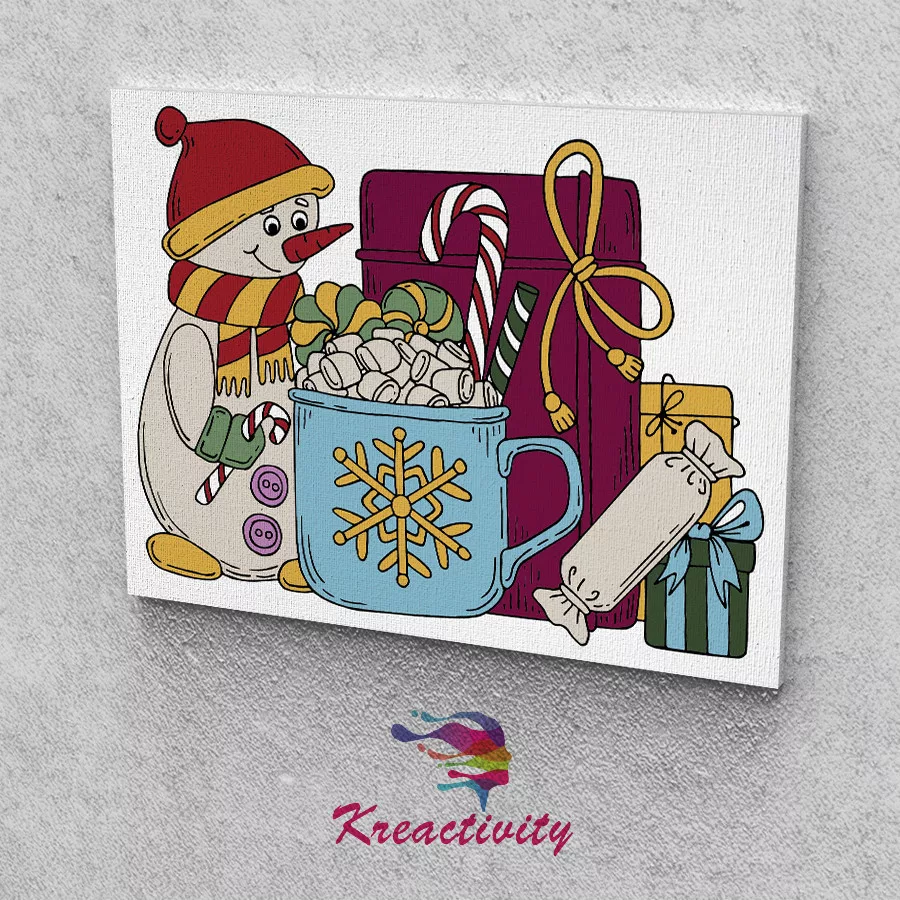 Kreatív festőszett gyermekeknek 30x40-es vászonra nyomtatva Hóember