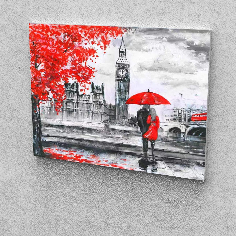 Szürke piros London festés számok alapján kreatív készlet keret nélkül 40x50